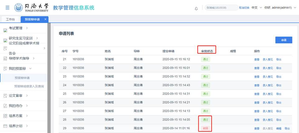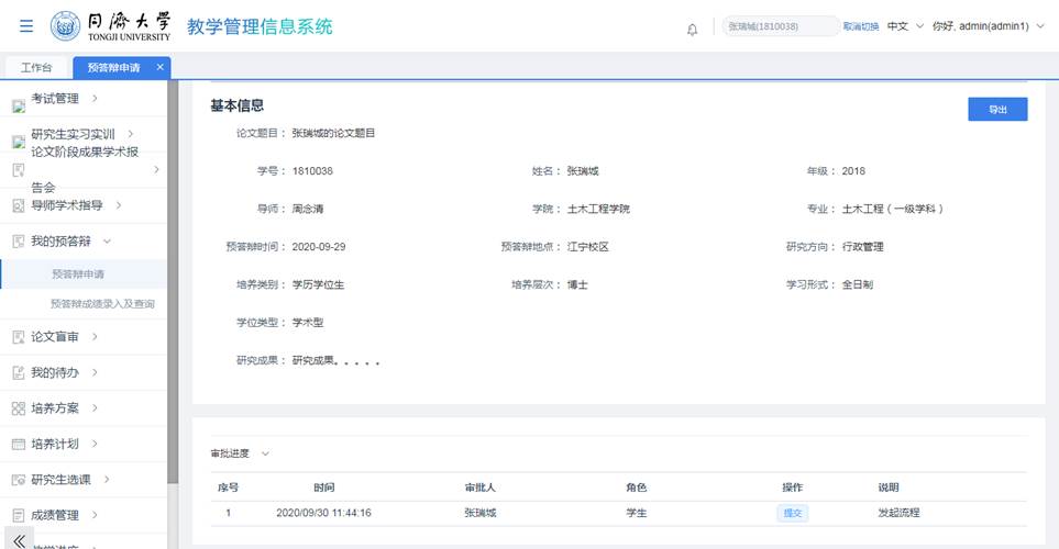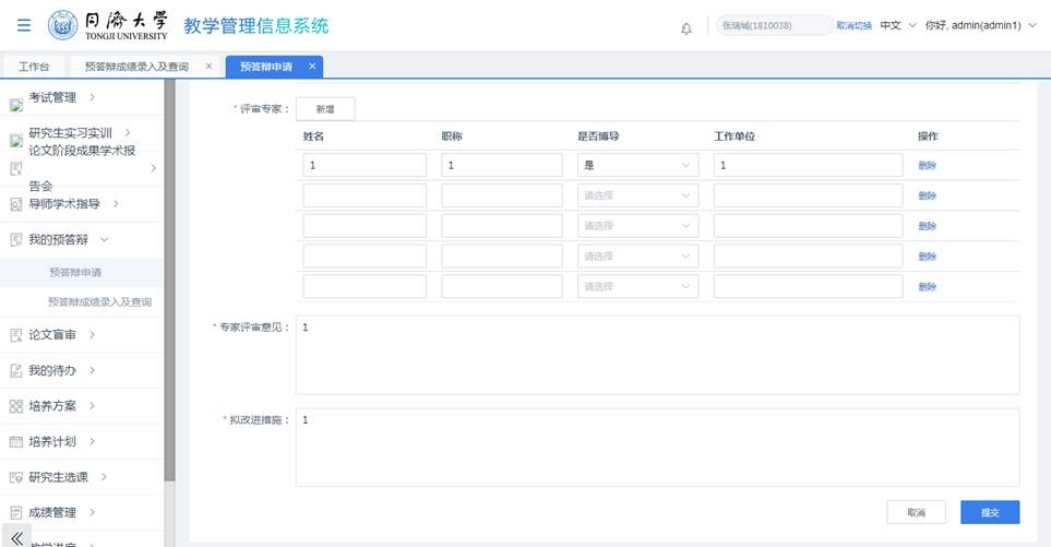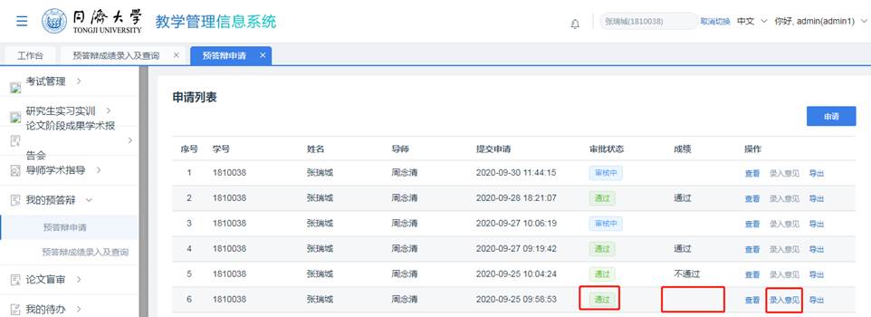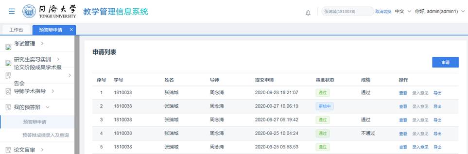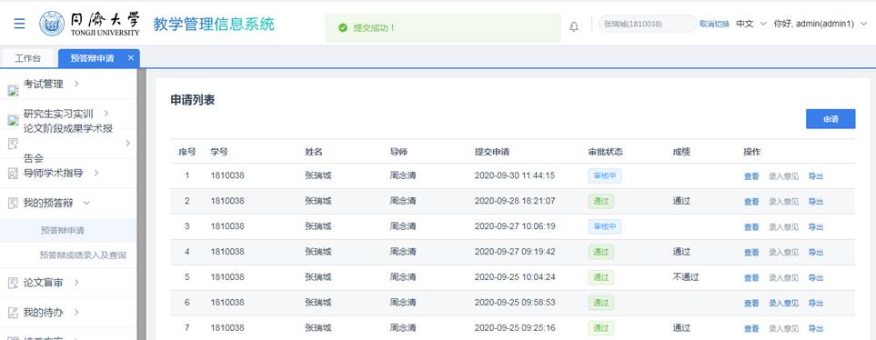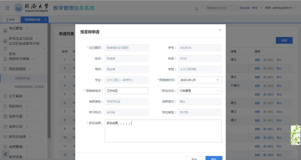 同济大学教学管理信息系统-必修环节-预答辩——导师操作指南 |