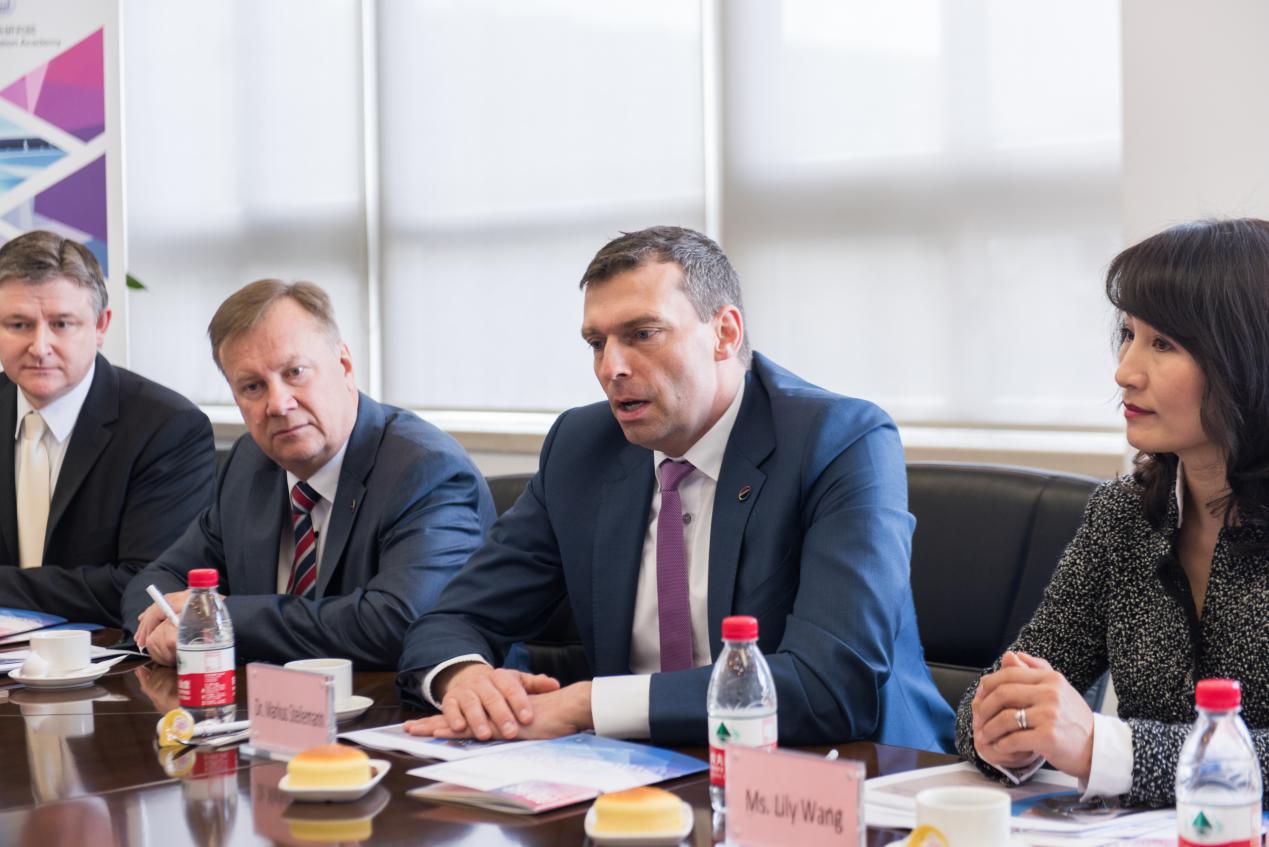会前,同济大学常务副校长伍江教授与研究院指导委员会成员进行了亲切会谈。伍江校长向施乐文博士介绍了依托同济大学新成立的上海自主智能无人系统科学中心,希望同济大学与科思创能够强强联合、优势互补、携手共进,加快创新成果产业化步伐。