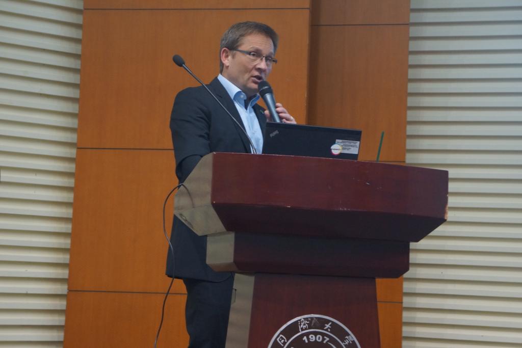 在同心楼224会议室召开了全院大会。大会特别邀请了同济大学特邀讲座教授、同济-科思创创新研究院院长、科思创亚太区创新负责人、科思创聚合物研发中心负责人韩思乐博士(Dr. Christian Haessler)、科思创健康安全环境&行政经理许文波女士以及同济-科思创创新研究院科思创代表、科思创行业倡导与可持续发展经理郭辉先生出席。大会共分三个议程:韩思乐博士与许文波女士做主题为《实验室安全与管理》的报告;袁华副书记兼纪委书记通报高校违纪案例,进行警示教育;袁华副书记向全体教职工介绍工会福利。本次大会由院党委书记王中平书记主持。