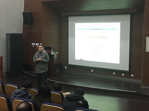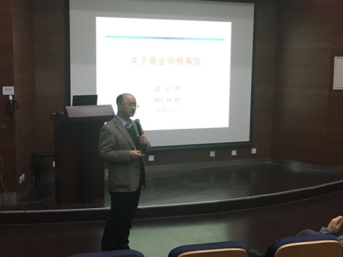 2018年度国家自然科学基金申报动员及经验交流会在德才馆二楼报告厅召开,学科委员会主任黄云辉、副院长邱军及翟继卫、在职教师及博士后近50人到场,大会由副院长翟继卫教授主持。