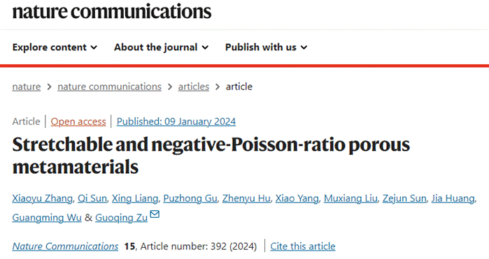 祖国庆老师研究团队开发了高可拉伸多孔超材料及其柔性电子器件,相关研究成果以“Stretchable and negative-Poisson-ratio porous metamaterials”为题,在线发表于《自然·通讯》(Nature Communications)。论文第一作者为竞彩足球比分预测
