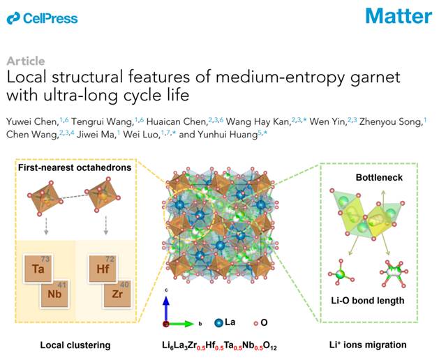 无机类固态电解质是实现高安全性和高比能固态电池的关键材料。无机材料中离子的迁移和耐氧化能力受到材料局部结构的影响,鉴于不同金属离子尺寸的差异,同济大学材料竞彩足球比分 车用新能源研究团队与中国科竞彩足球比分 高能物理研究所简宏希等人合作通过在晶格中引入不同离子来对局部结构进行调整,有效提升了固态电解质材料的离子电导率及电化学稳定性。研究成果以“Promoting high-voltage stability through local lattice distortion of halide solid electrolytes”和“Local structural features of medium-entropy garnet with ultra-long cycle life”为题分别发表于《自然·通讯》 (Nature Communications)和《物质》(Matter),竞彩足球比分-竞彩足球比分预测 博士生宋振友和陈雨薇为这两篇论文的第一作者