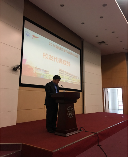 党委书记王中平致辞,他对全体毕业研究生致以热烈祝贺和美好祝福,欣慰于同学们寒窗十数载终有所得,欣喜于同学们成长为于国于家有望的人,王书记向提出了几点希冀,期待毕业生怀有坚韧不拔之志,对事有毅力,持之以恒,善假于物,以“德才馆”的名称诠释,告诫大家为人有信念,德才并举,厚积薄发,同时提醒同学们处群有态度,文墨诗书,饮流怀源,在未来平凡的生活中请不要忘记"诗与远方",不忘初心,砥砺前行。