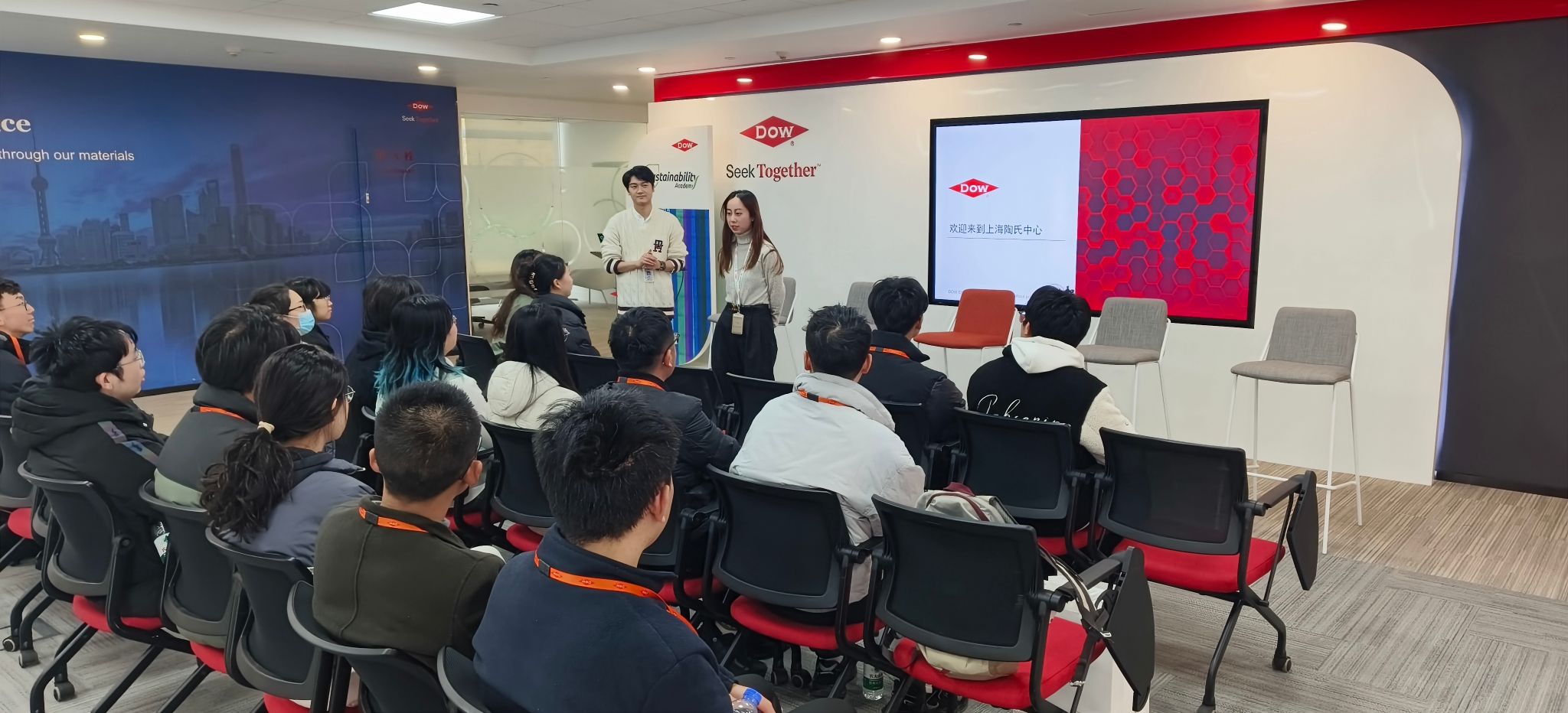师生的到访表示热烈欢迎,并详细介绍了公司的发展历程、业务范围以及未来的战略规划。随后,在同济材料2012级本科校友兰浩然的热情带领和深度讲解中,师生们参观了陶氏公司的亚太学习交流中心、世界顶级实验室以及全球产品展示中心。整洁有序的工作环境、先进高科技的研发设备、专业且充满活力的工作团队及开放包容的工作氛围给学生们留下了极其深刻的印象,并在切身的体验中了解到如何利用新型科技为全球绿色转型做出积极贡献,直观地感受新质生产力是如何成为推动社会进步和发展的强大引擎。