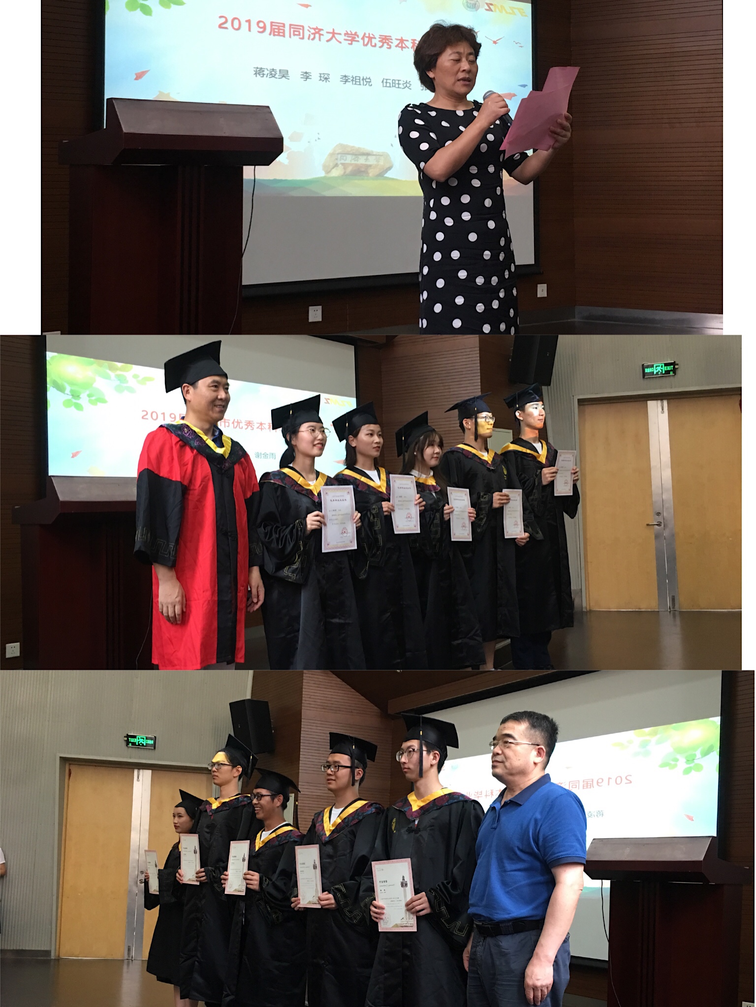 2019届上海市优秀毕业生和同济大学优秀毕业生名单。翟继卫教授、姚武教授为10名获奖同学颁发了荣誉证书。