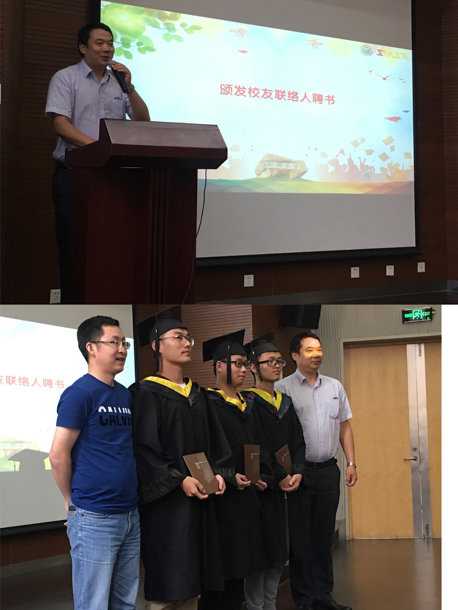 外联部主任张永明老师宣读了2019届本科生校友联系人名单,并与徐凯学长一起,向校友联系人颁发证书。