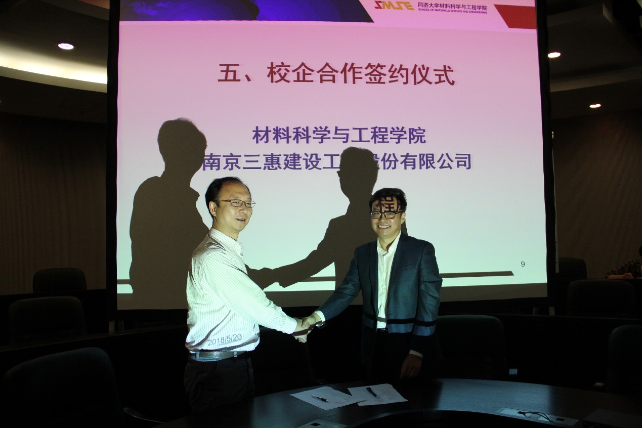 与南京三惠建设工程股份有限公司进行了校企合作签约仪式,三惠公司代表表示今天的签约只是合作的一个起点,希望今后会有更深层次的合作。