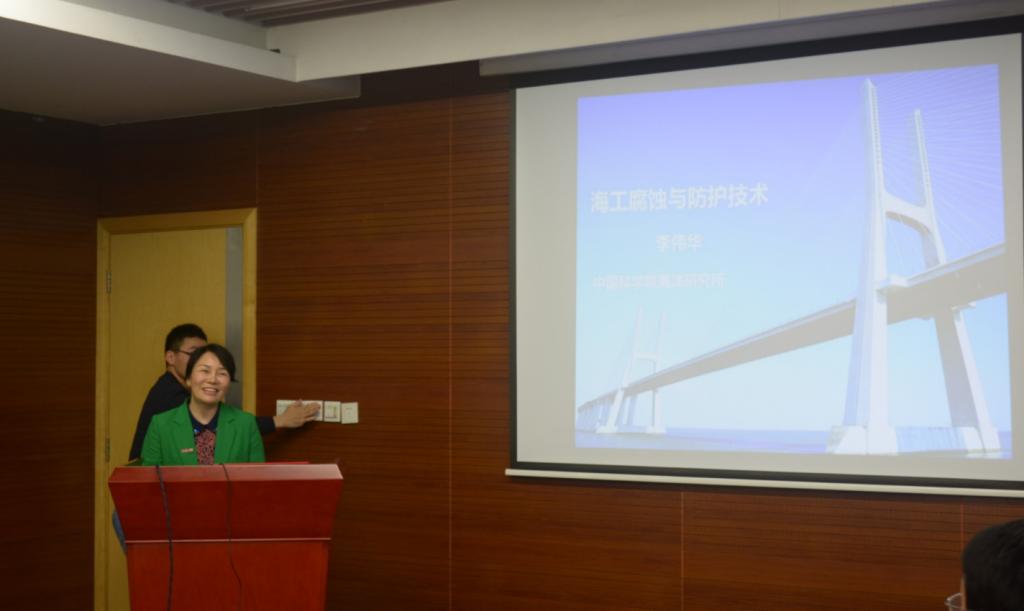 师生作了题为“海工腐蚀与防护技术”的精彩学术报告,并与参会师生进行了深入交流。