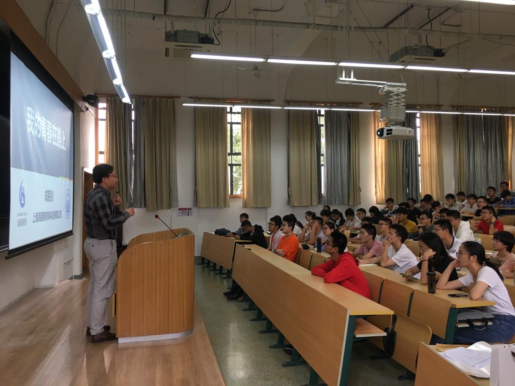 ,曾担任校学生会主席,在校期间荣获挑战杯全国特等奖等数多荣誉。他向同学们介绍了如何加入实验研究组的经验与方法,如何在校期间进行创新创业,以及参与挑战杯时期辛苦研究的日日夜夜。紧接着介绍到了他的创业生涯,他放弃保研机会,进入市场了解并积累资源与蓄积能量,创建上海海顾新材料科技有限公司。大学时期挑战杯的课题:水热固化海砂为低环境负荷的新型建筑材料,便是他创建公司的原动力。他说自己是一个爱折腾的人,想得到就应该能做得出来,做人要敢于实践。公司从建立到现在,经历三次转型,团队的不断尝试与改变,他们找到了最符合本公司的领域——聚焦淤泥处理。学长向同学们介绍如何将淤泥做成建筑材料,实现高性价比、高效资源、脱水-干化-资源一体化。通过模拟地下的成岩机理,利用水热技术将地下需要千百万年的成岩周期缩短至工业条件下的数小时。创业的酸甜苦辣,学长却乐在其中,深感他的责任与担当。讲座的最后,成学长送给同学们几句话,以此激励同学们在大学生活中勇于尝试,永不言弃。并且以过来人的经历告诉同学们,创业时期是一段人生中最绚丽的日子,同学们可加入创业小组或团队,通过一群人的力量,走得更高更远。趁青春,多去看看,让青春行走在路上!