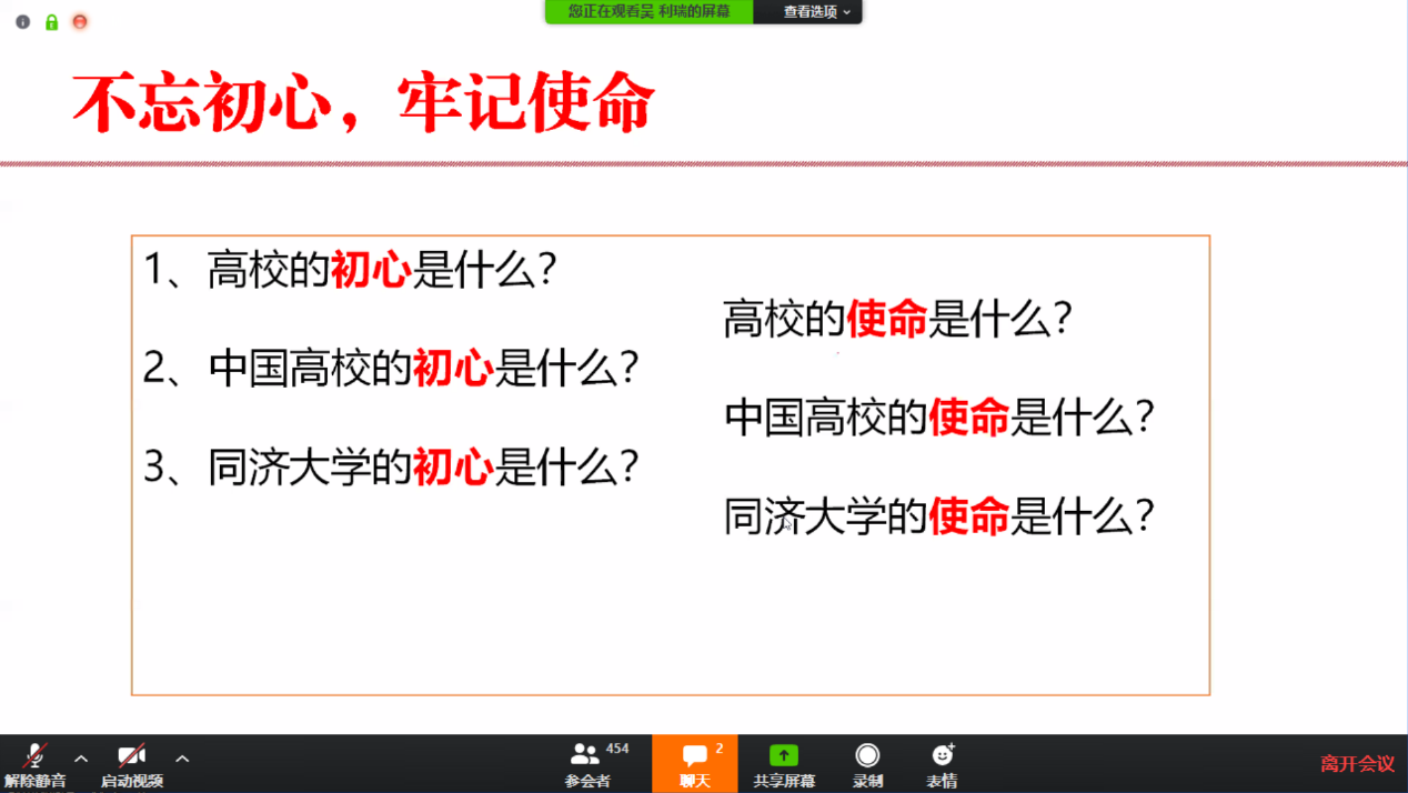 党政领导班子及全教职工130余人通过网络会议平台聆听了报告。