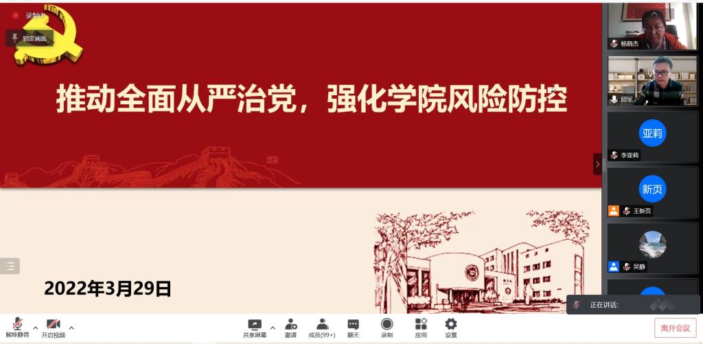 存在的问题和风险隐患。指出,我们要认真学习、深刻领会这次会议精神,以自我革命的精神和敢于担当的勇气,真抓实干,务求实效。我们要强化风险意识,牢牢守住学校政治安全底线,以实际行动迎接党的二十大胜利召开。