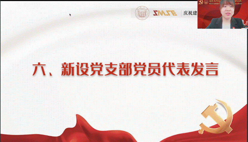 新设党支部党员代表研究生第八党支部赵桐同学发言。作为新设党支部的一员,她谈及,作为一个新生的学生党支部,将对标争先,探索前进,完成上级党组织交代的各项任务和活动,严格推进党支部的标准化规范化建设,力争在学校和竞彩足球比分