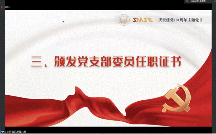 党委副书记王凌凌宣读了2021-2022学年毕业支委名单,对学生支委辛勤工作和勤勉付出表示衷心感谢,并为毕业的基层党支部委员“云”颁发了任职证书。