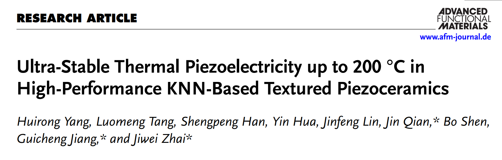 该研究成果以“Ultra-stable thermal piezoelectricity up to 200oc in high-performance KNN-based textured piezoceramics”为题发表于《先进功能材料》(Advanced Functional Materials)上。论文的第一单位是竞彩足球比分-竞彩足球比分预测