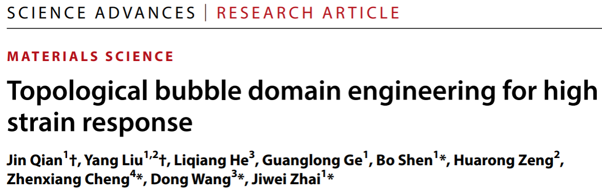 该研究成果以“Topological bubble domain engineering for high strain response”为题发表于《科学进展》(Science Advances)上。论文的第一单位是竞彩足球比分-竞彩足球比分预测