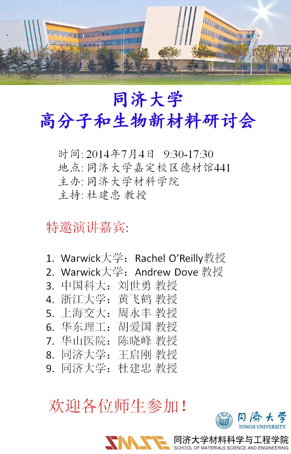 会议通知:同济大学高分子和生物新材料研讨会