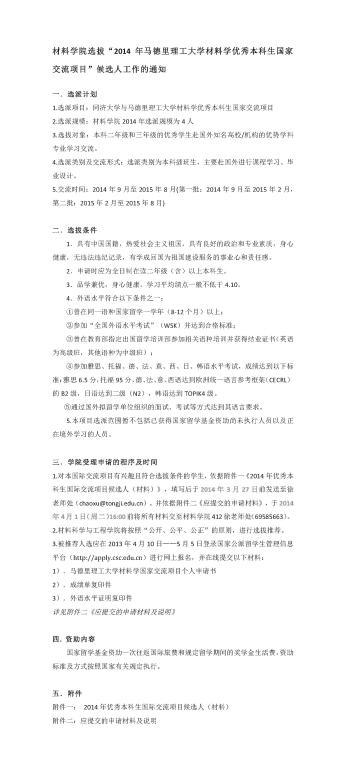 材料竞彩足球比分 选拔“2014年马德里理工大学材料学优秀本科生国家交流项目”候选人工作的通知