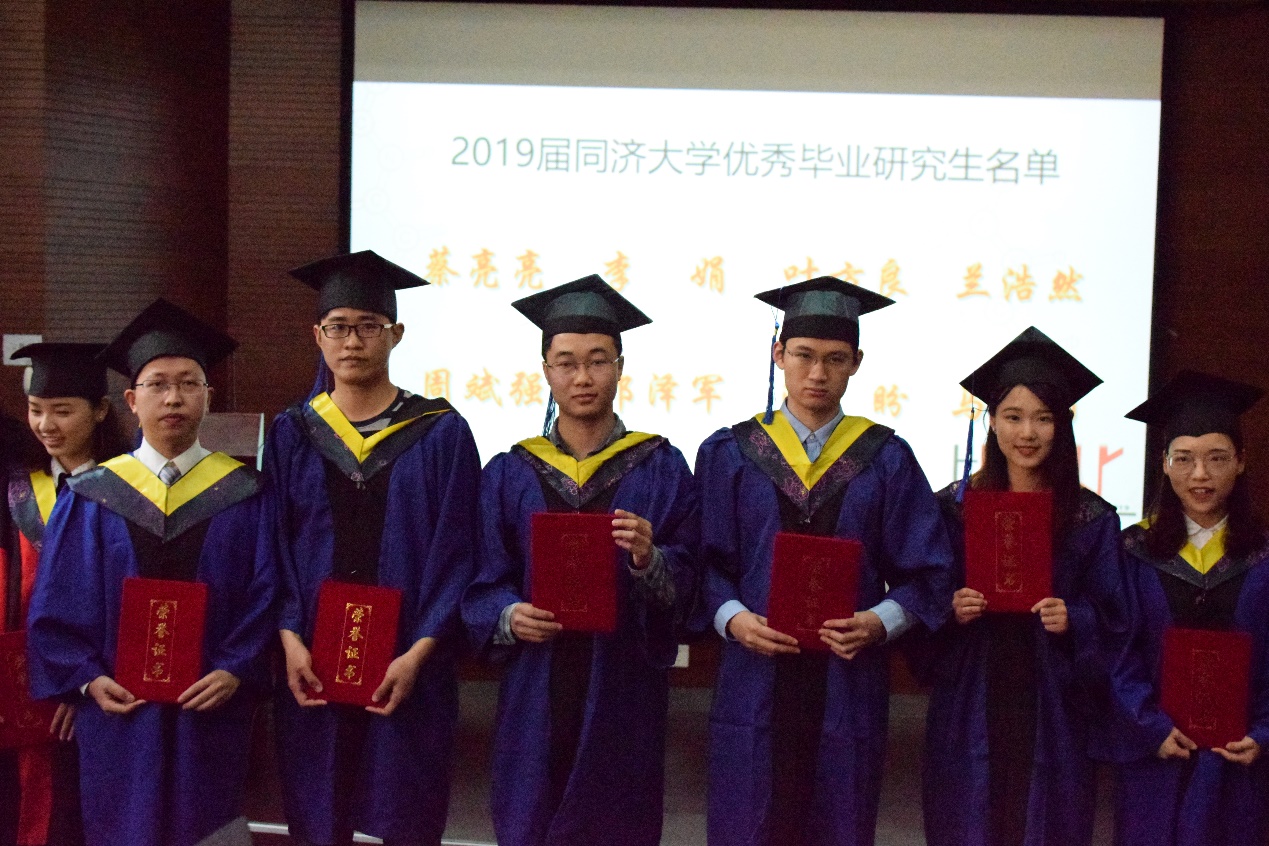 共有8名同学获得“上海市优秀毕业生”称号,8名同学获得“同济大学优秀毕业生”称号,与会领导为16名获奖同学颁发了荣誉证书。