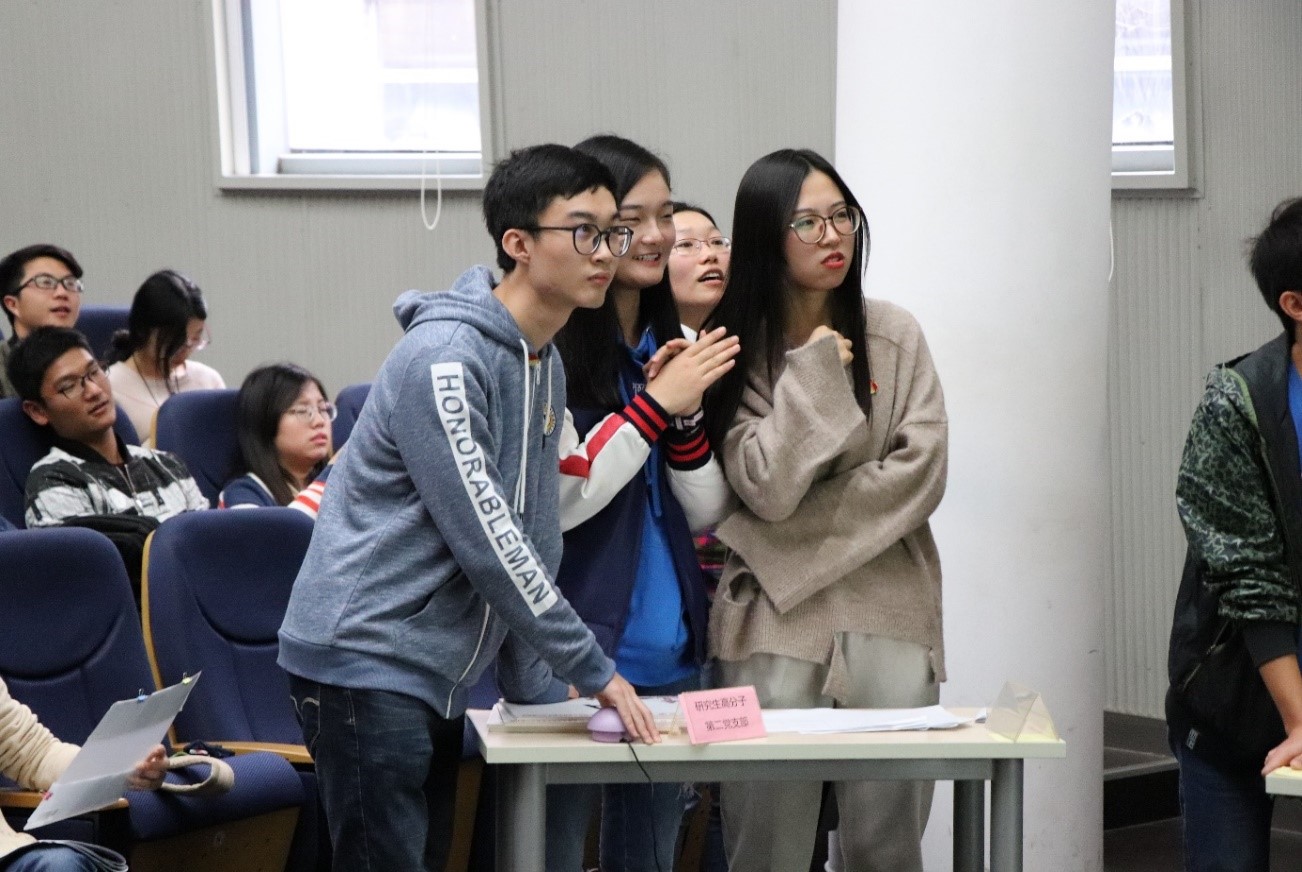 2) 以多样形式增进全员互动,有效彰显党、团青年先锋模范作用:知识竞赛、微党课比赛、微团课比赛等不但激励参赛学生个人在赛前进行认真学习和精心准备,也有利于促进学生之间的交流学习。比赛过程中,有参赛队员在没有任何提示的前提下准确熟练地娓娓道出党章每一章节的标题,真正意义上做到党章“烂熟于心”,给现场学生带来了极大的震撼、起到了良好的示范作用。