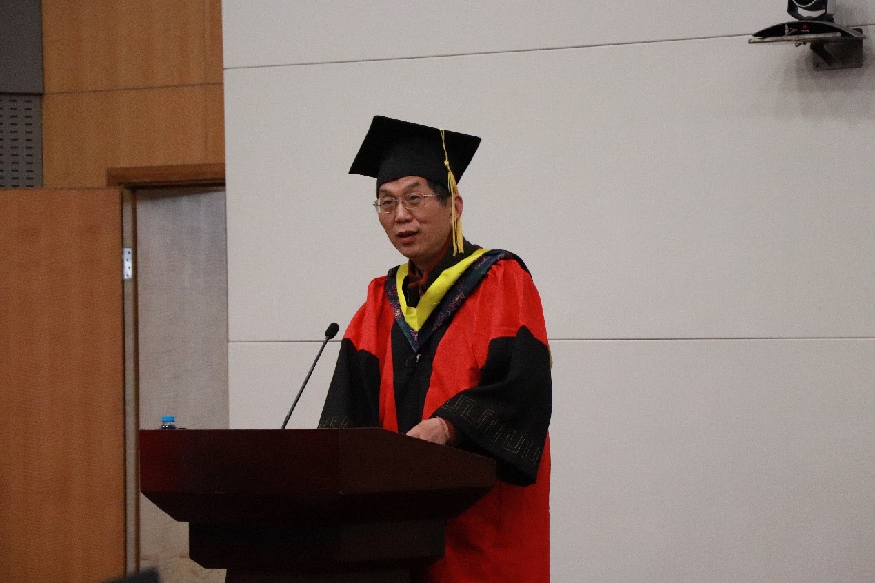 典礼在雄壮的国歌声中拉开序幕,典礼伊始,竞彩足球比分 党委书记王中平致辞,他对全体毕业研究生致以热烈祝贺和美好祝福,欣慰于同学们寒窗十数载终有所得,欣喜于同学们成长为于国于家有望的人,王书记向提出了几点希冀,期待毕业生怀有坚韧不拔之志,对事有毅力,持之以恒,善假于物,以“德才馆”的名称诠释,告诫大家为人有信念,德才并举,厚积薄发,同时提醒同学们处群有态度,文墨诗书,饮流怀源,在未来平凡的生活中请不要忘记"诗与远方",不忘初心,砥砺前行。