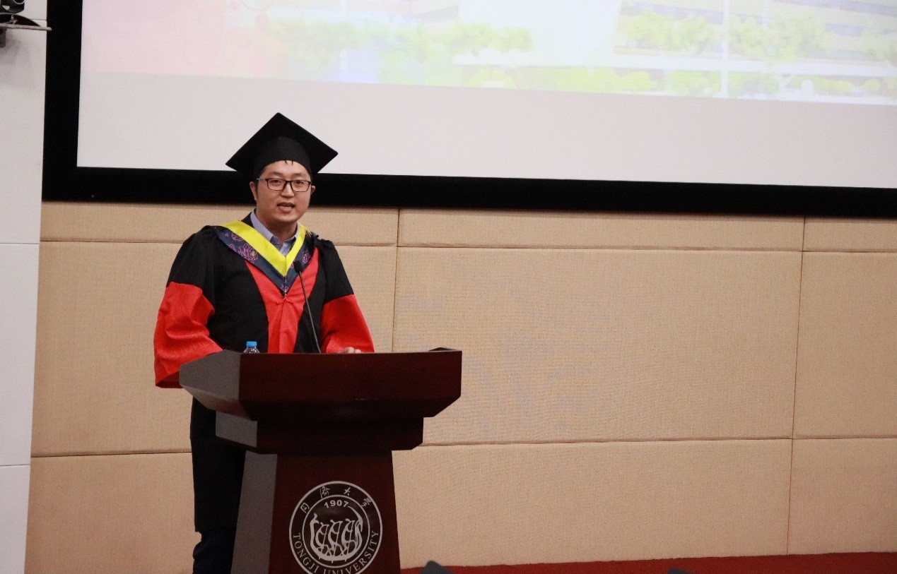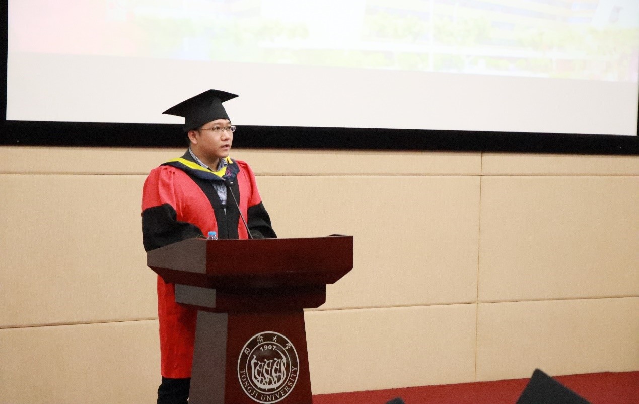 2018年上海市优秀毕业研究生、同济大学第十一届研究生“学术先锋”潘仲彬博士代表全体毕业生发言,他以人生选择和个人经历感慨学无止境,三载求学春秋,强大的信念支撑,一贯的坚持不懈,成就了自信满满、追求卓越的我们。他真挚感谢母校包容了我们的懵懂无知,孕育了我们的成熟睿智。大家相约,即便走得再远也要记得回来,特别为母校、材料竞彩足球比分 的明天再留下一份情、一份心。无论何时何地,将同济人“同舟共济、自强不息”的精神发扬光大。