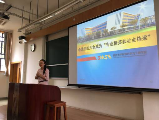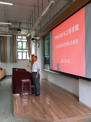的基本情况,他讲到选择材料即选择了未来的发展方向,时代赋予了材料太多的使命,同学们必将在材料领域大有作为,并真诚地与家长们分享了自己子女的培养经历,与家长们共勉育人之道。