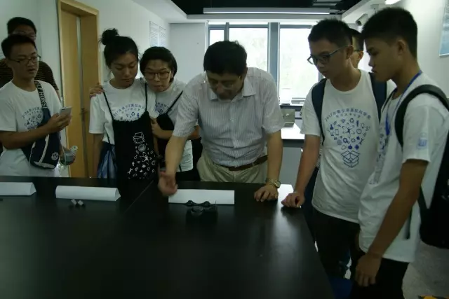 713日,科学营参观第二天。上午,营员们在441听取了无机材料系严彪老师的讲座。风趣的严彪老师为同学们准备了同济大学的樱花徽章作为纪念品,但获取条件还需要回答正确他讲座之中的问题。同学们闻此露出会意的微笑,并积极作好回答的准备。这之后,严彪老师结合“歼11”战机与《终结者》电影片段等贴近同学们的内容生动地展示了无机材料的发展前景,并通过问题循循善诱,启发同学们调动起自己课内的知识发掘科研创新的路径。同学与带队老师们皆投入其中,并用热烈的掌声为严彪老师的讲座画上句号。讲座的抛砖引玉过后,严彪老师带领同学们前往无机材料实验室,再次深入对于科学的探索。实验室里展出了磁性材料、记忆材料等多项内容,可以撕开的金属片、随温度伸长缩短的“弹簧”、还有神奇的磁流体,都让同学们大开眼界。由特殊材料制成的音响可以在玻璃上发出节奏的震颤,同学们外放着自己喜欢听的歌儿,随着歌声一面打着节拍,一面追问着音响的原理与构成。