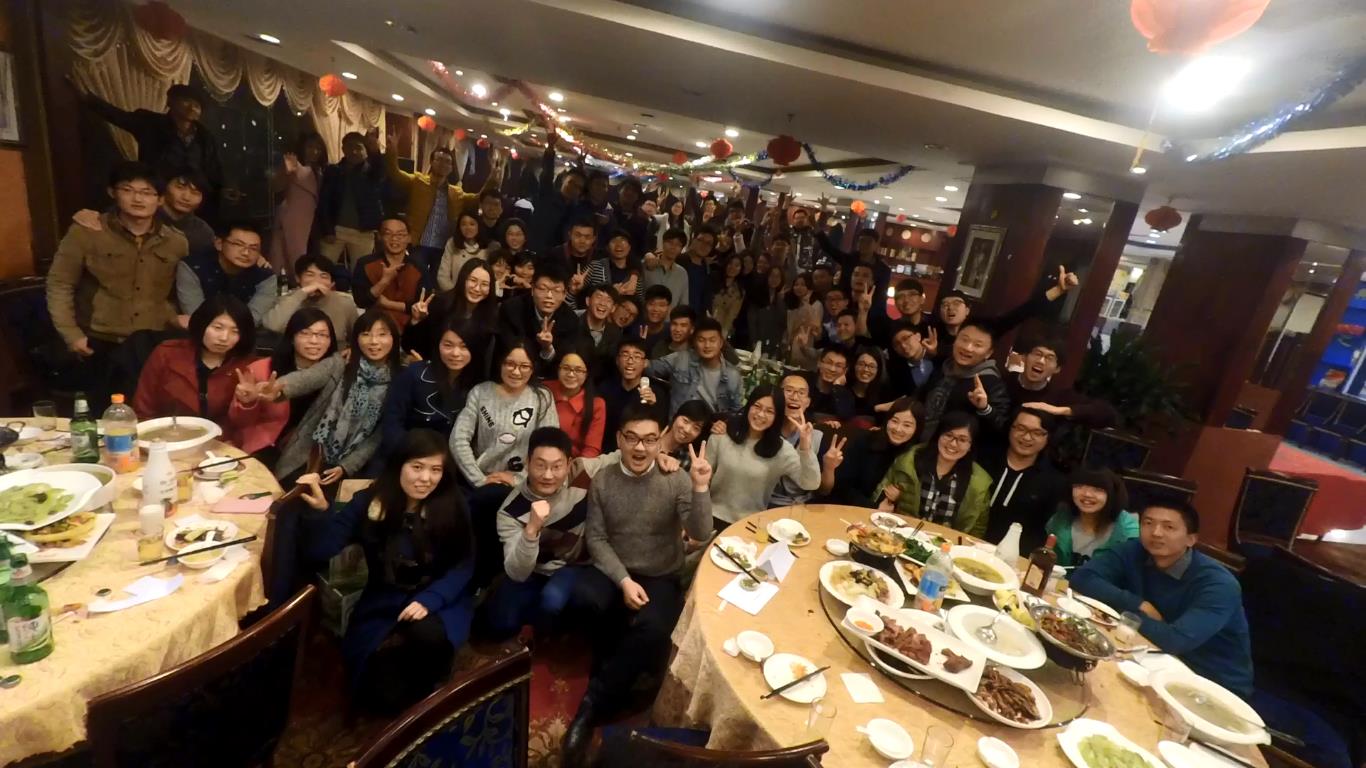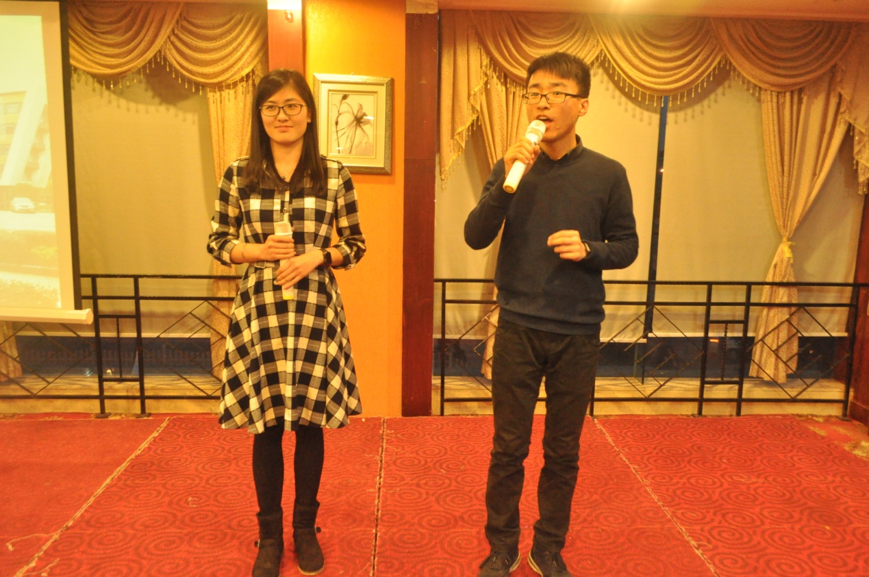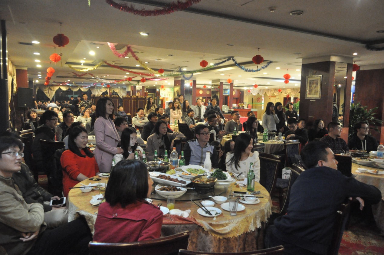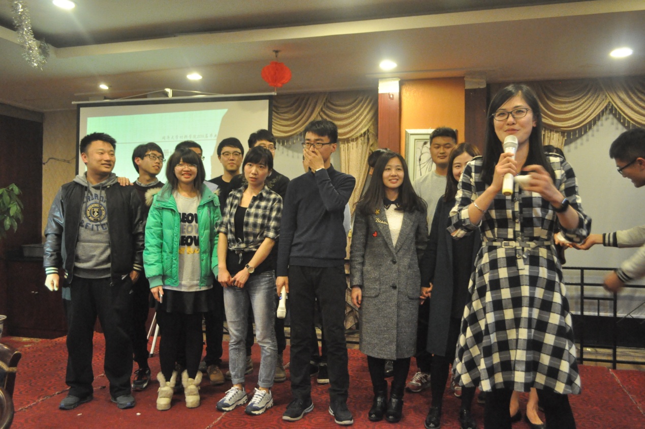 老师袁怡洁、宋文娟一行、辅导员代表吉莉,以及13级硕士毕业生近100人参加了晚会。