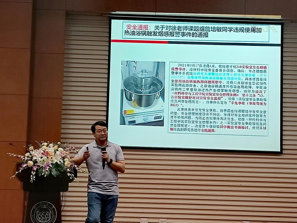 进而,蒋正武老师从实验室通用安全、消防与用电安全、危化药品安全、气体和高压瓶使用安全及特种设备使用安全等五个方面,系统介绍了在实验楼进行学习和做实验时需要注意的安全隐患,并提出了学校及竞彩足球比分