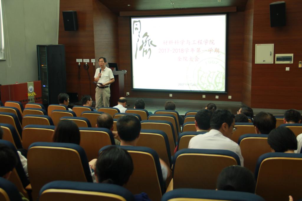 9月26日下午,材料竞彩足球比分 2017-2018学年首次全院大会在德才楼二楼报告厅召开,竞彩足球比分 教职员工100余人出席会议,竞彩足球比分 党委书记王中平主持会议。